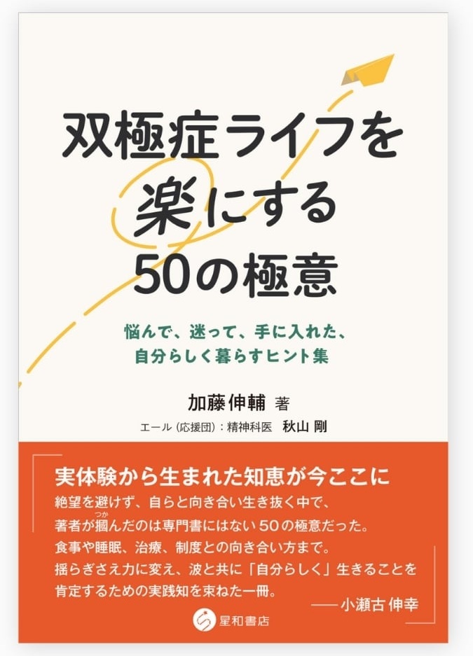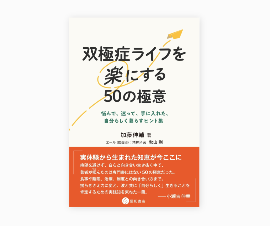 2026年3月26日、双極症と向き合う著者が、絶望を避けずに自らと向き合い、生き抜く中で掴み取った「専門書にはない50の極意」をまとめた実践的な一冊『双極症ライフを楽にする50の極意 悩んで、迷って、手に入れた、自分らしく暮らすヒント集』(加藤伸輔氏・著)が星和書店から刊行されます。