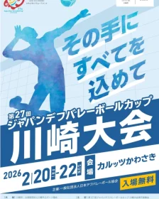 2026年2月20日から22日まで、カルッツかわさきにて「第27回ジャパンデフバレーボールカップ川崎大会」が開催されます。聴覚障害のある選手たちが躍動する日本最大のデフバレーボール大会で、昨年の東京2025デフリンピックで金メダルを獲得した女子日本代表チームの選手も出場予定です。入場無料でどなたでも観戦できます。