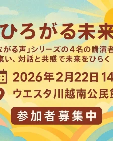 埼玉県川越市で2026年2月22日に開催される対話イベント「つながる声からひろがる未来」は、アルコール依存、障害、セクシュアリティ、難病など多様な背景を持つ当事者が登壇し、それぞれの経験と葛藤、希望を分かち合います。参加費無料で、多様な生き方について深く考え、未来への一歩を見つける機会となるでしょう。