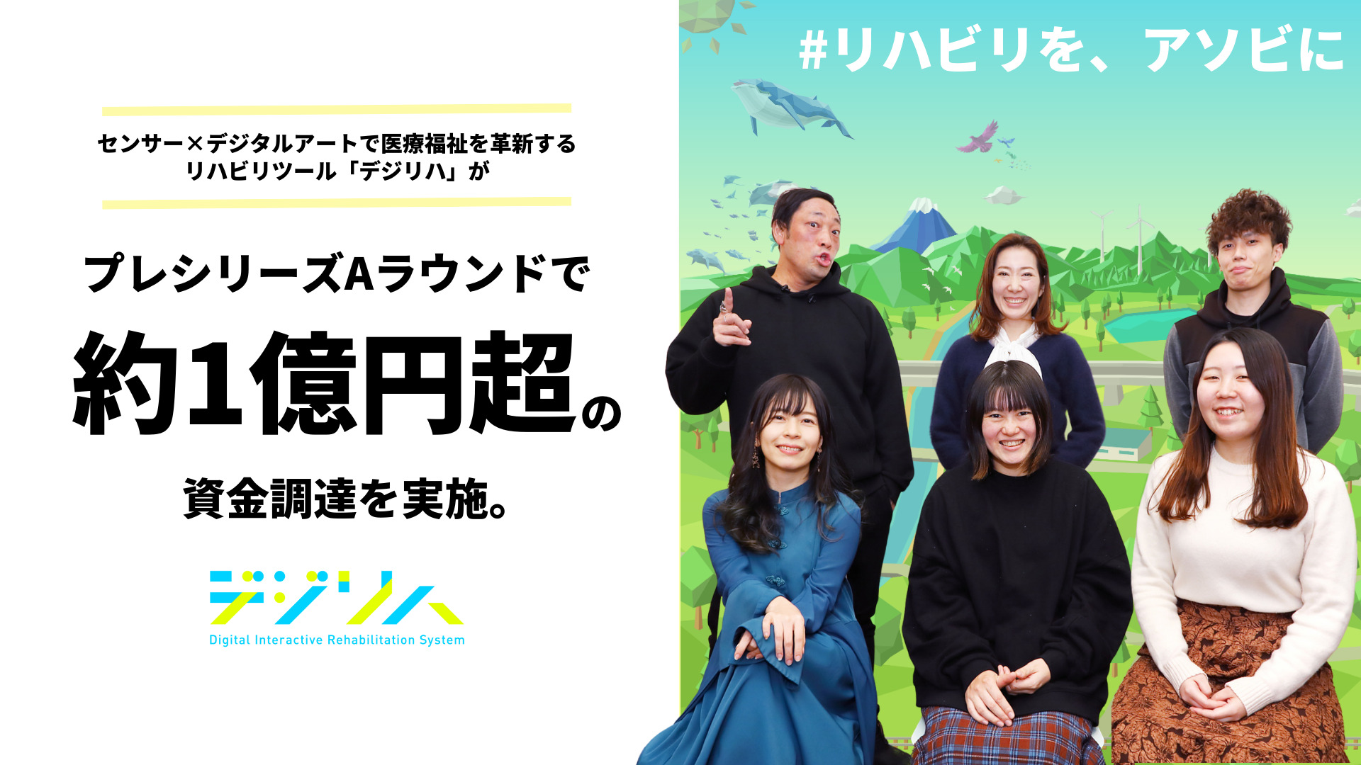 デジタルアートとセンサーを活用するリハビリツール「デジリハ」を開発する株式会社デジリハは、フューチャーベンチャーキャピタル株式会社、鎌倉投信株式会社、パラマウントベット株式会社からプレシリーズAラウンドにおいて第三者割当増資により1億円超の資金調達を実施しました。