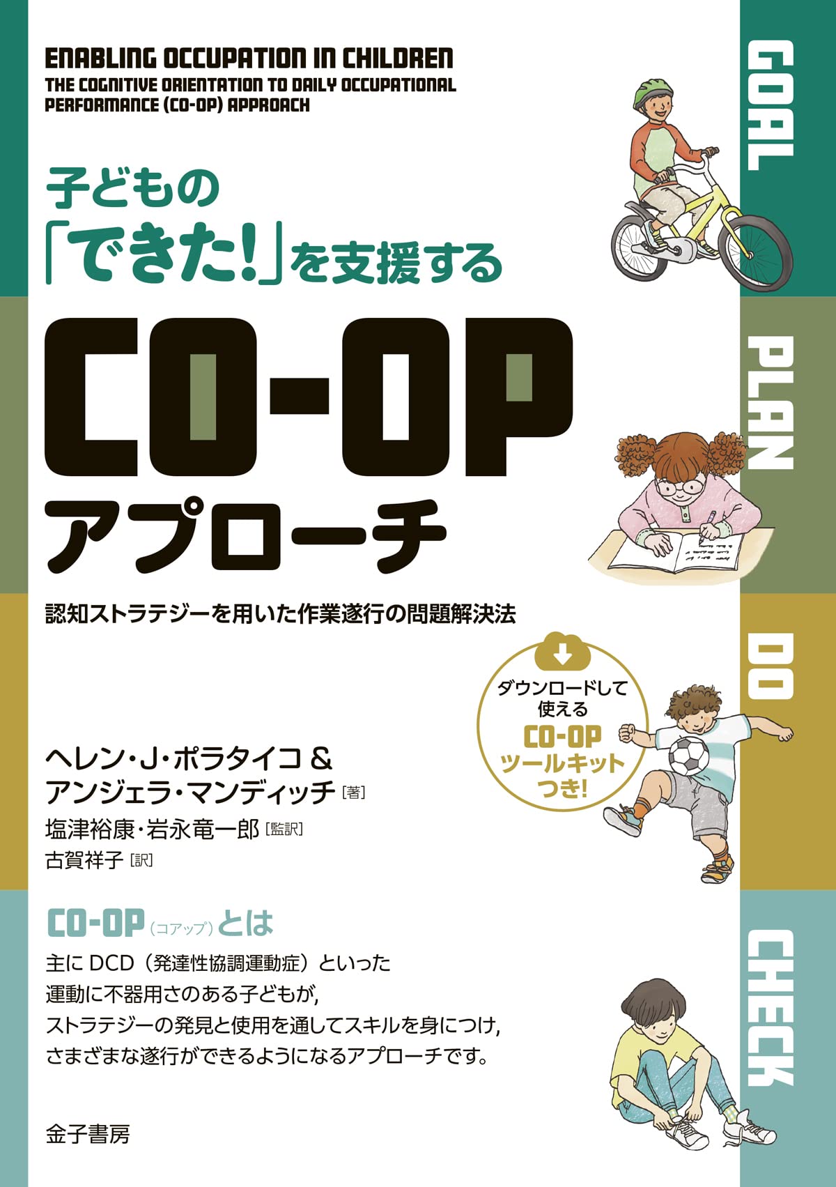 着替えや食事、学校での学習や友だちとの遊びなど、日常生活における様々な場面で、いわゆる「不器用さ」や「運動の苦手さ」によって苦戦している子どものために、カナダで開発された画期的な支援法がCO-OP(コアップ)アプローチです。