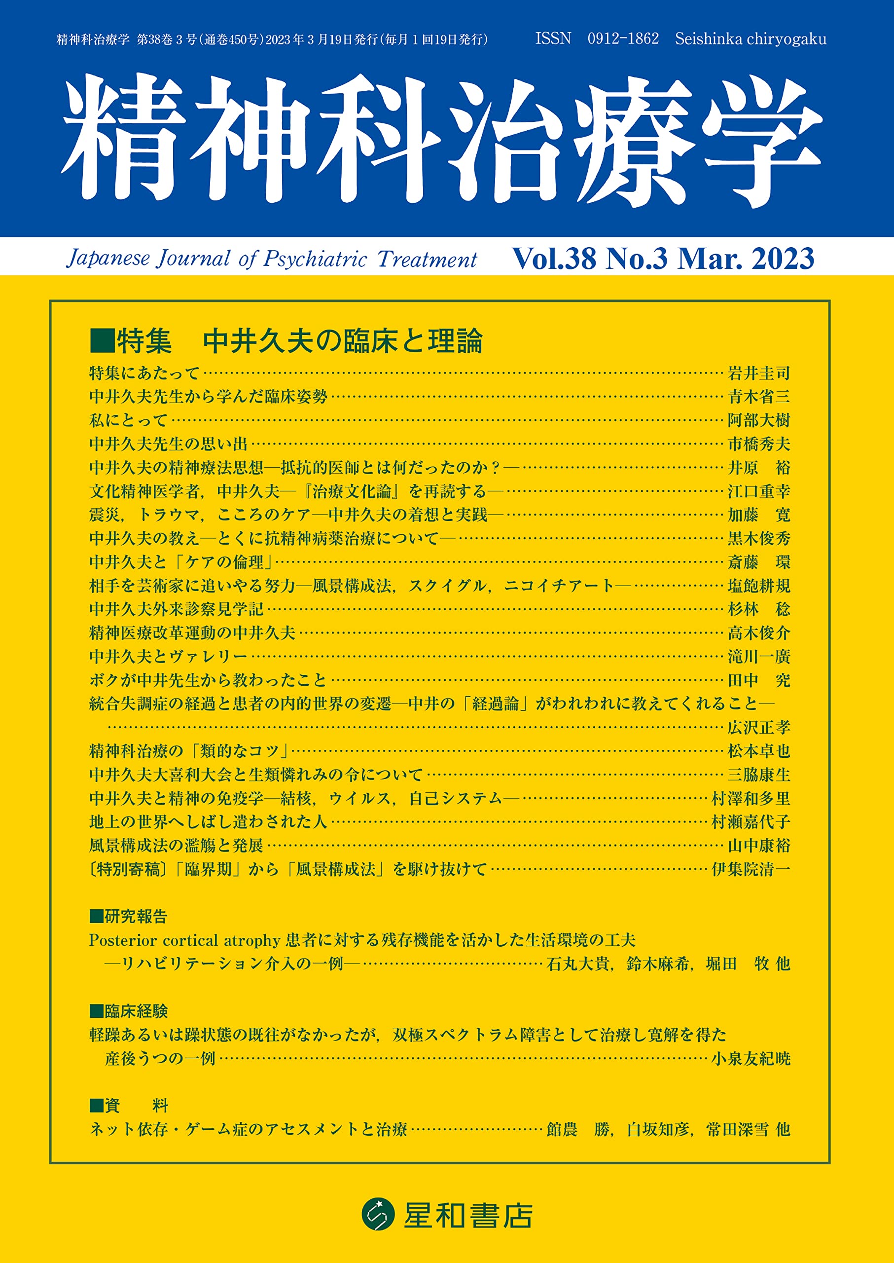 精神科治療学 Vol.38 No.3 2023年3月号〈特集〉中井久夫の臨床と理論