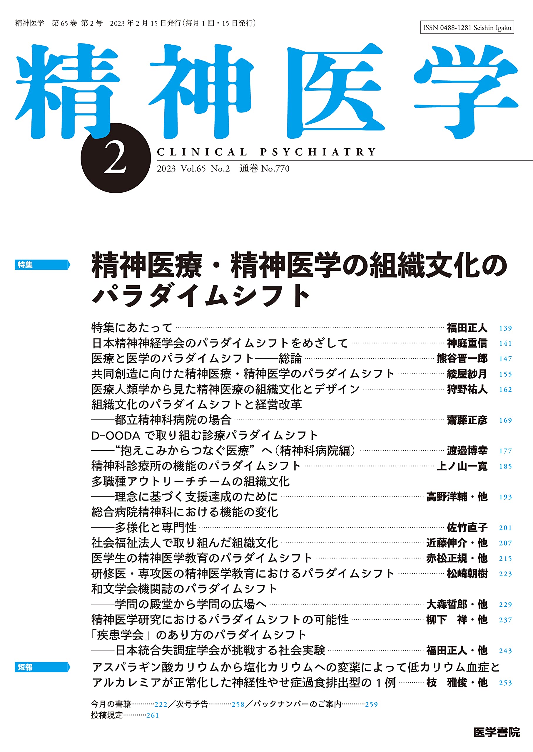 特集 精神医療・精神医学の組織文化のパラダイムシフト