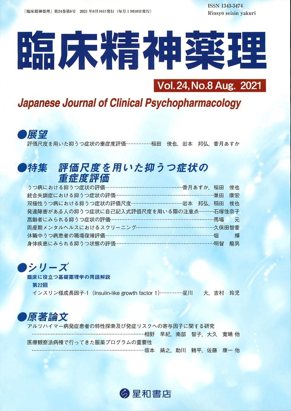 臨床精神薬理 第24巻8号〈特集〉評価尺度を用いた抑うつ症状の重症度評価
