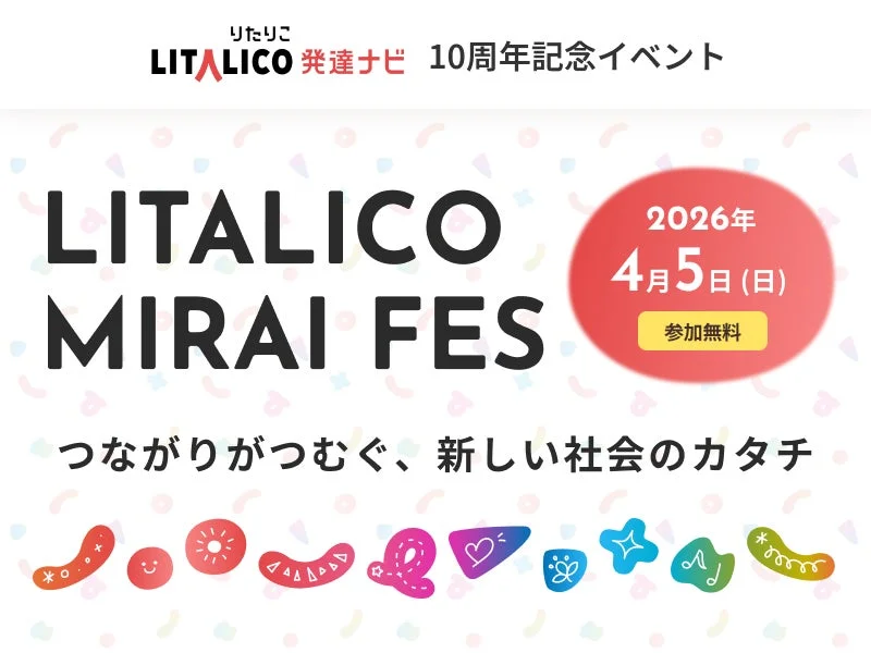 発達が気になるお子さまの保護者や関係者にとって、未来を拓くヒントや仲間とのつながりを見つけられる貴重な機会となるでしょう。LITALICO発達ナビ10周年を記念し、2026年4月5日(日)に開催される「LITALICO MIRAI FES」では、本田秀夫先生をはじめとする専門家による講演や、LITALICOの様々なサービスを体験・相談できるブースなど、充実したプログラムが用意されています。この記事では、イベントの全貌と参加のメリットをご紹介します。