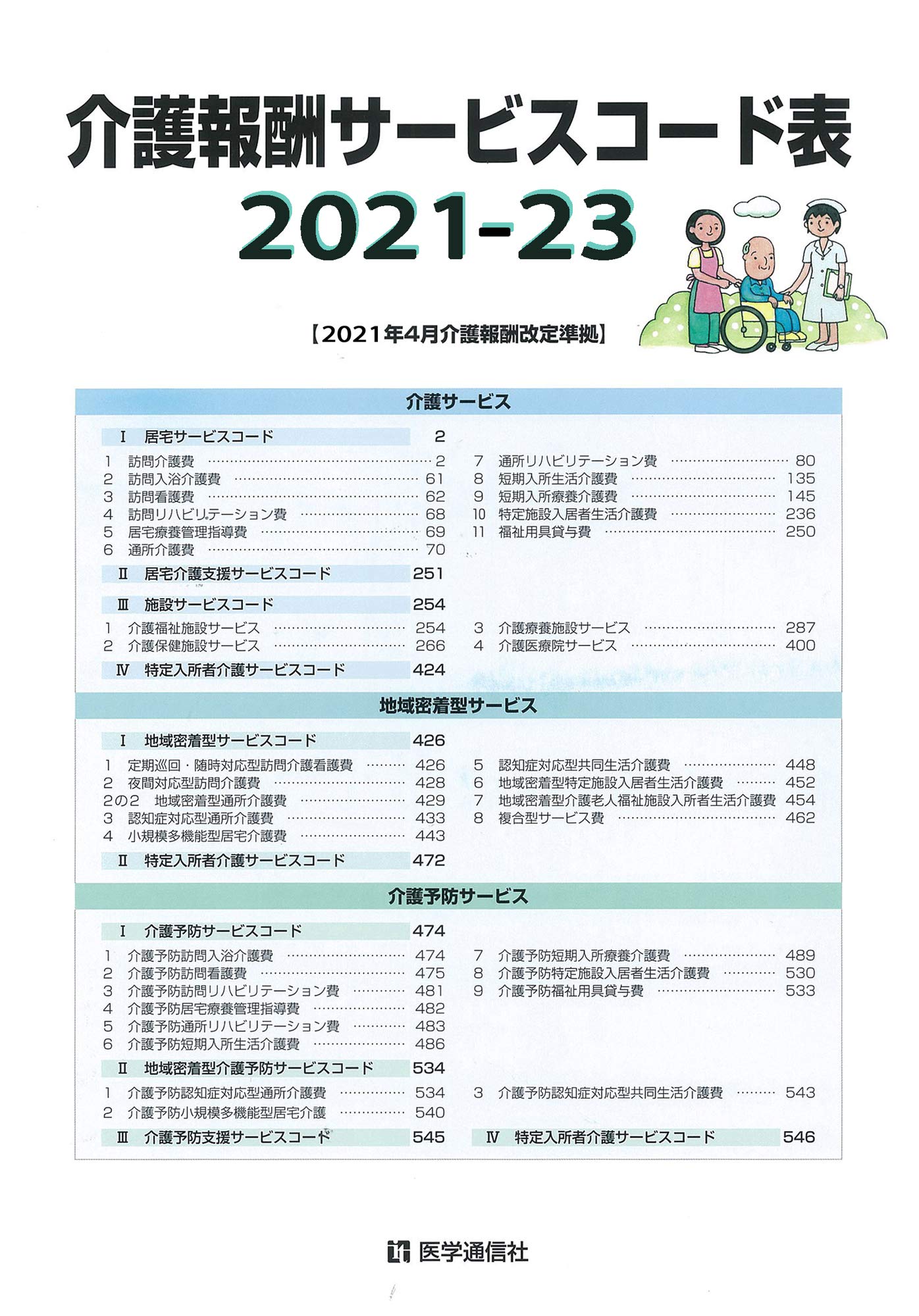 2021年4月介護報酬改定に準拠した介護報酬サービスコード表!! コード,算定構造,単位数が一覧となった,介護報酬請求実務に必須の1冊。今版からB5判2色刷に変更し,より見やすく使いやすくなりました!!