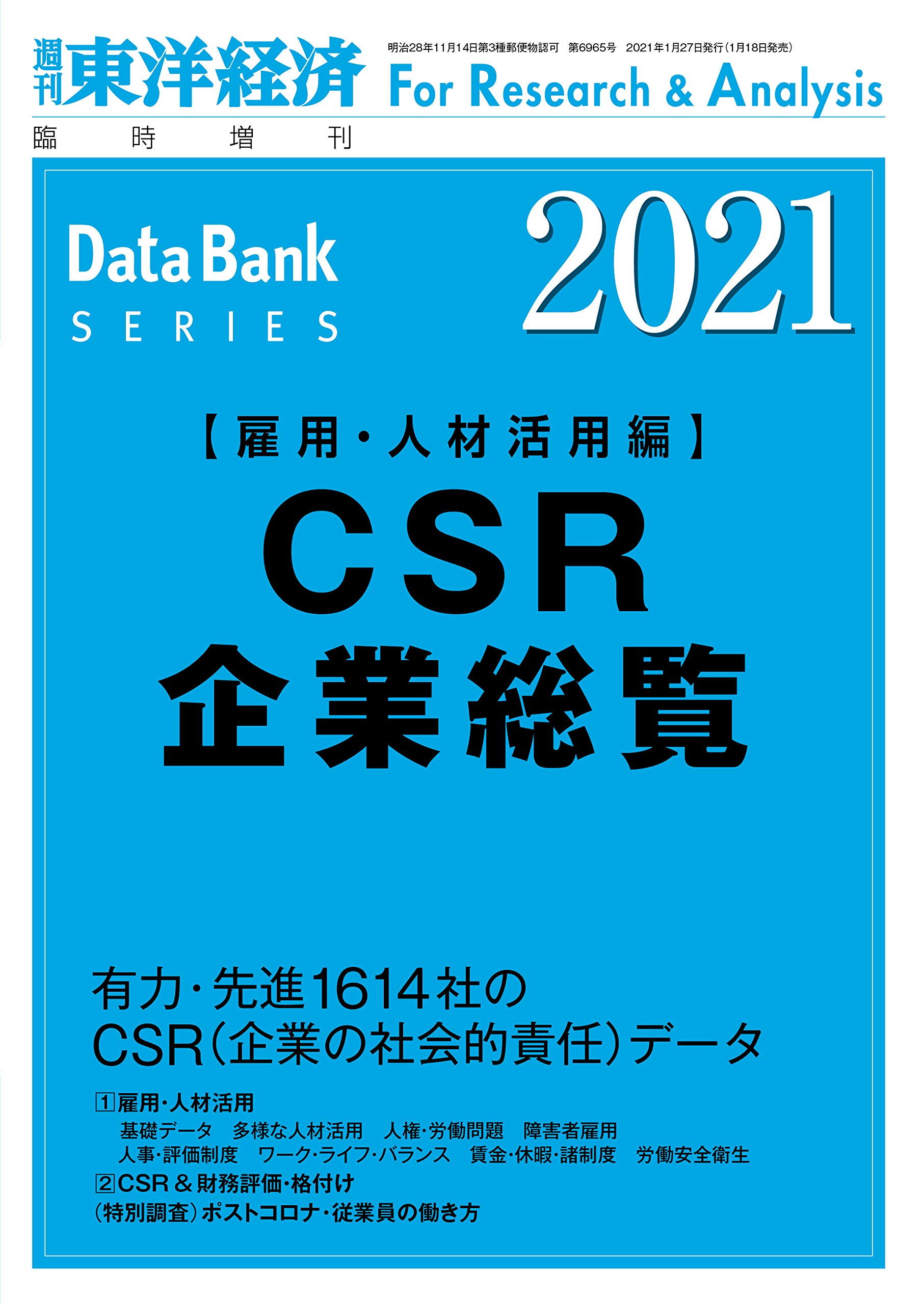 社会から評価され、長く存続できる持続性の高い会社を見つけるために必須の情報となったCSR(企業の社会的責任)の専門情報誌。雇用・人材活用編とESG編の2冊に主要1614社の詳細情報を収録。