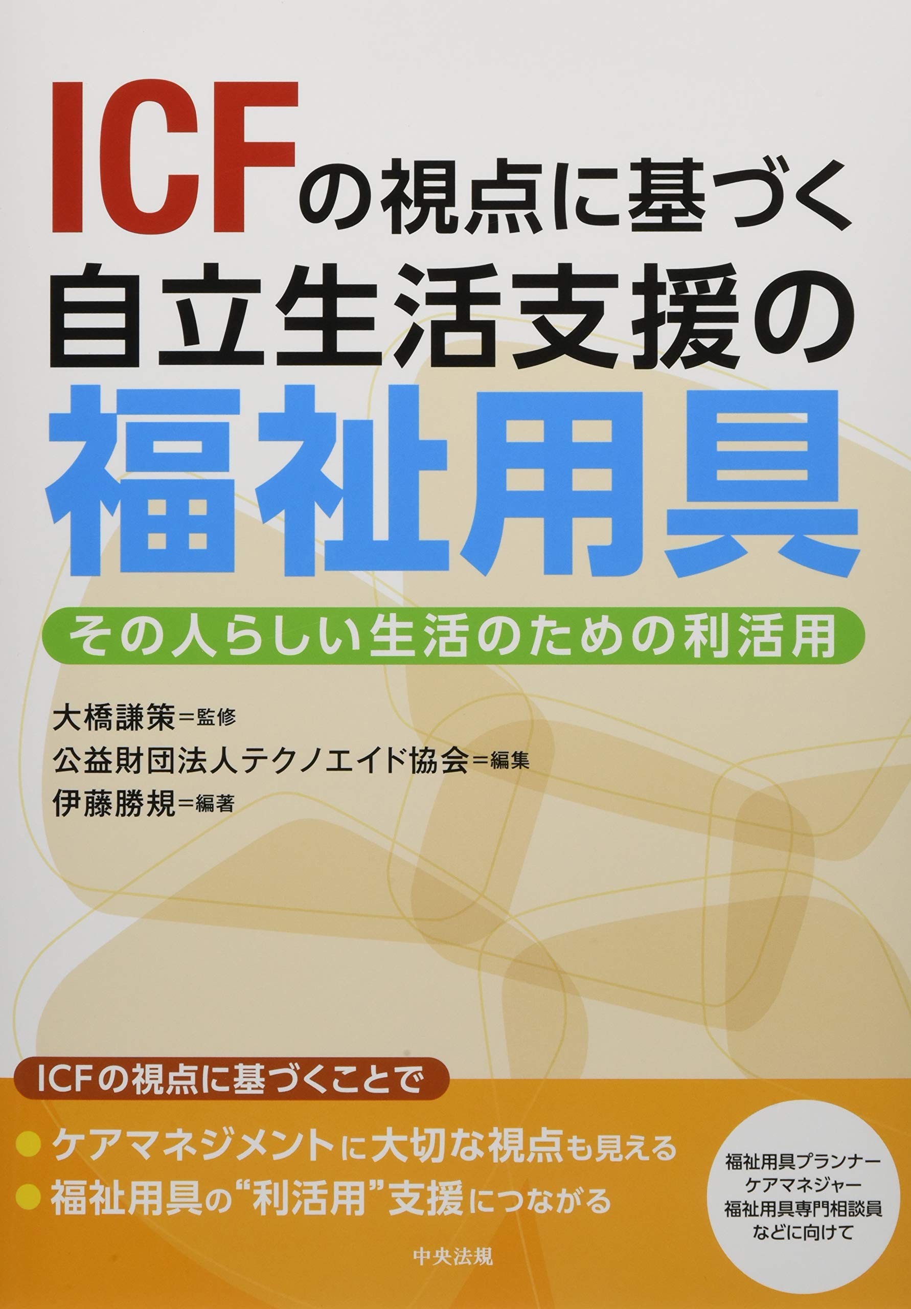ICFの視点に基づき「環境因子」である福祉用具の機能や活用方法を理解する一冊。利用する人の状態や目的に応じた適切な用具の選定、使い方の視点をわかりやすくまとめた。介護保険外の福祉用具や住宅改修についても取り上げ、福祉用具の利活用支援につなげる。