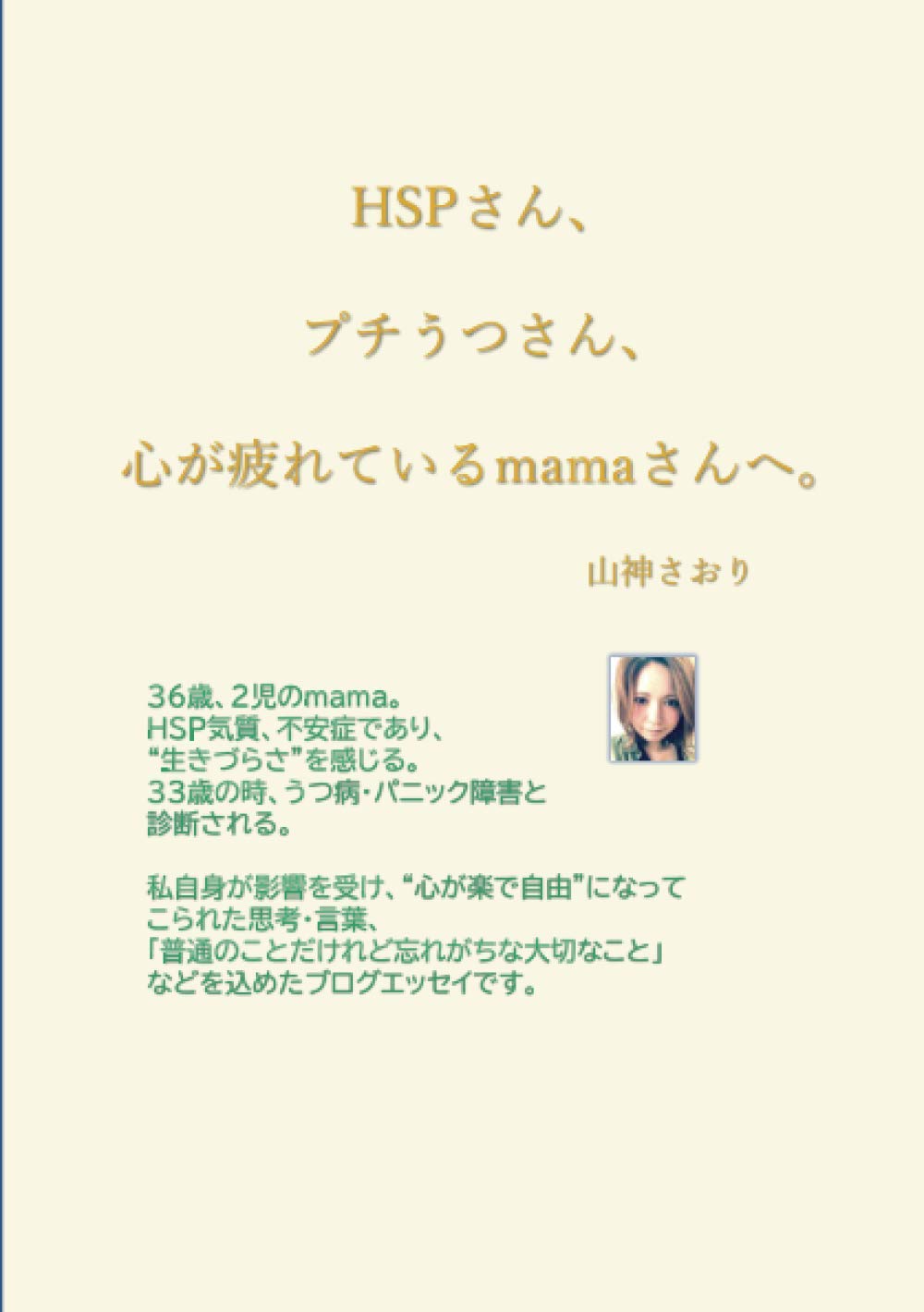 HSPさん、プチうつさん、心が疲れているmamaさんへ。: 36歳、2児のmama。HSP気質、不安症であり、”生きづらさ”を感じる。33歳のとき、うつ病・パニック障害であると診断される。私自身が影響を受け、”心が楽で自由”になってこられた思考・言葉、「普通のことだけれど忘れがちな大切なこと」などを込めたブログエッセイです。