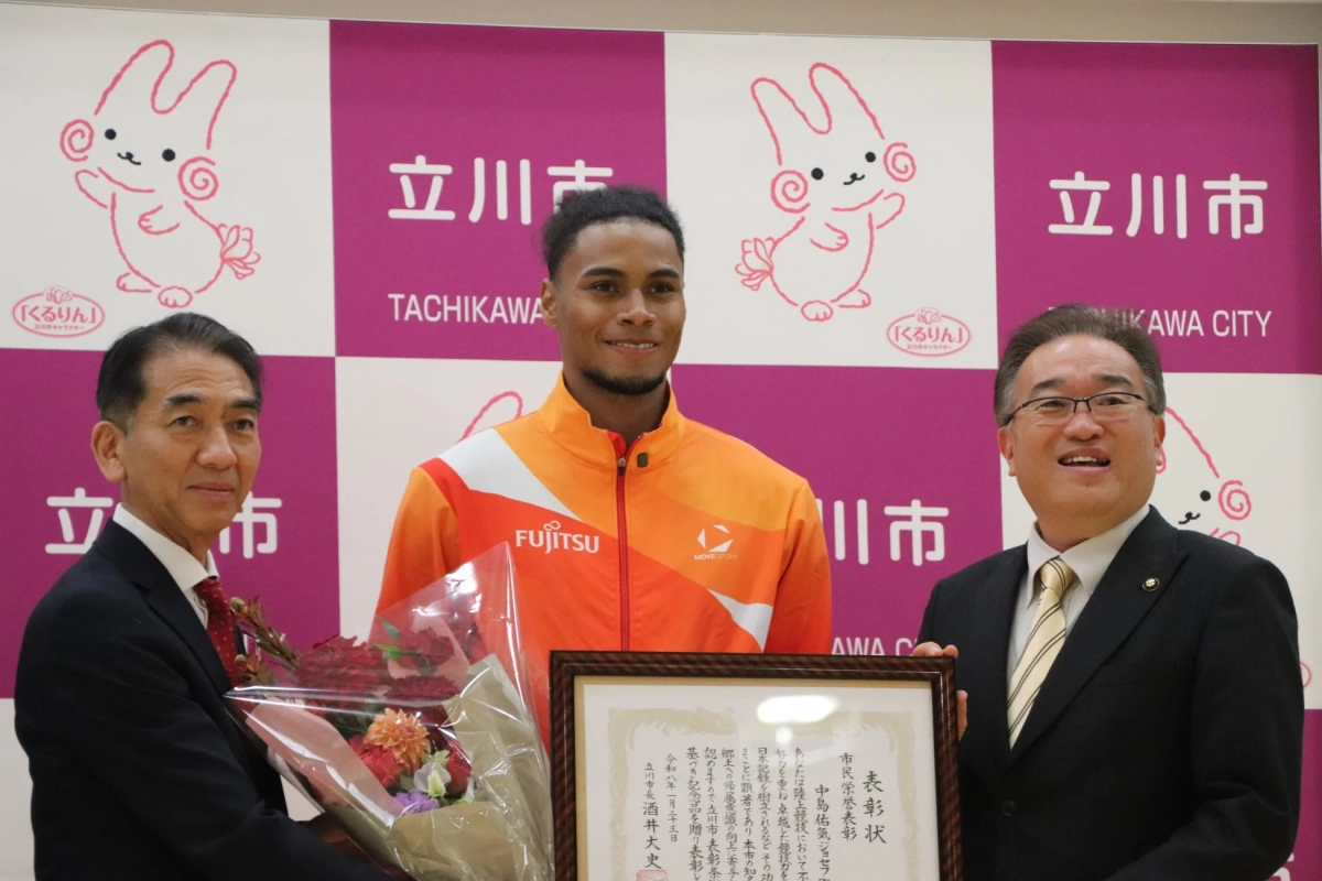立川市は、東京2025世界陸上で活躍した中島佑気ジョセフ選手と、東京2025デフリンピック日本代表主将を務めた岡田海緒選手に市民栄誉表彰を贈呈しました。