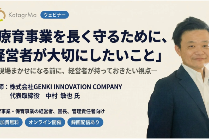 こうした背景を受け、株式会社カタグルマは、2026年3月19日(木)に、放課後等デイサービスや児童発達支援の経営層を対象とした無料ウェビナー「療育事業を長く守るために、経営者が大切にしたいこと ―現場まかせになる前に、経営者が持っておきたい視点―」を開催します。