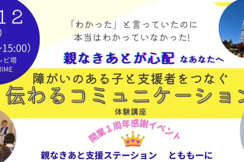 2026年5月12日(火)に名古屋テレビ塔(中部電力MIRAI TOWER)3階のTHE TOWER LOUNGE CASHIMEにて、「障がい者の親なきあと支援ステーション『とももーに』」の開業1周年記念イベントとして、「親なきあとが心配なあなたへ~障がいのある子と支援者をつなぐ伝わるコミュニケーション体験講座」が開催されます。この講座は、親御さんが抱える不安の軽減と、お子様が自分らしく安心して暮らせる未来への具体的な一歩を踏み出すための貴重な機会となるでしょう。