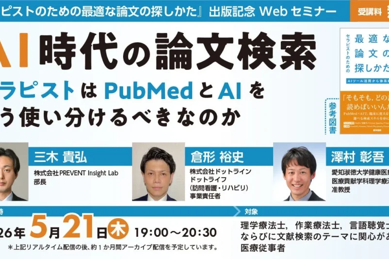 タイトル: 【発刊記念Webセミナー】『セラピストのための最適な論文の探しかた』AI時代の論文検索―セラピストはPubMedとAIをどう使い分けるべきなのか