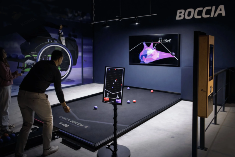 「CYBER BOCCIA」の大きな特徴の一つは、日本語・英語・中国語に対応した多言語音声ナビゲーションを搭載している点です。これにより、国籍や言語の違いを超えて、誰もが直感的にプレイできる体験を実現しています。また、独自のセンシング技術による自動計測システムは、プレイヤーが審判を介さずにゲームを進行できるため、スムーズで快適なプレイ環境を提供します。こうしたノンバーバルな体験設計が、多様な人々が共にスポーツを楽しむインクルーシブな空間を創り出しています。