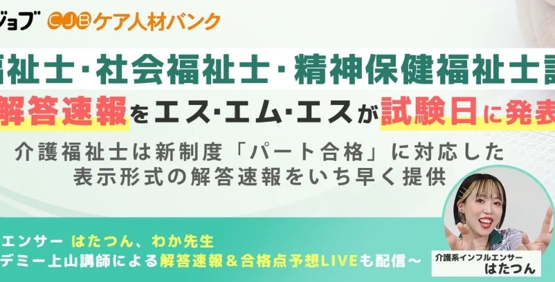 本年の介護福祉士国家試験では、介護系インフルエンサーのはたつん氏、わか先生、そしてカイゴジョブアカデミーの上山講師による「介護福祉士国家試験2026解答速報生配信」が試験当日にYouTubeで配信されます。