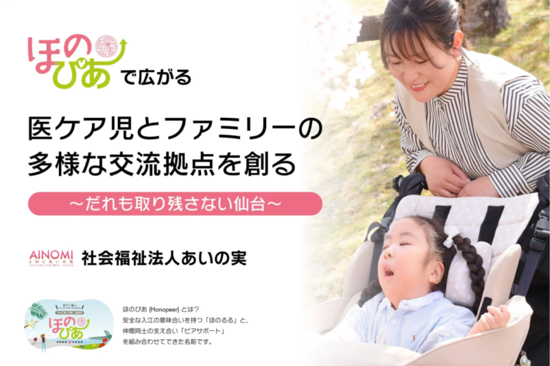 『ほのぴあ』は、医療的ケア児・者、重症心身障害児・者のご家族が直面する「情報や人につながりにくい」という現実に対し、同じ立場や経験を持つ家族同士が支え合う「ピアサポート」を軸に支援を提供する事業です。制度や支援資源が整備されつつある一方で、個々の家族が必要な情報にたどり着けない、という課題を解決するために、多様な支援接点を具体化してきました。この事業は、仙台市健康福祉局 障害者支援課と社会福祉法人あいの実が、市民協働事業提案制度に基づいて実施しています。