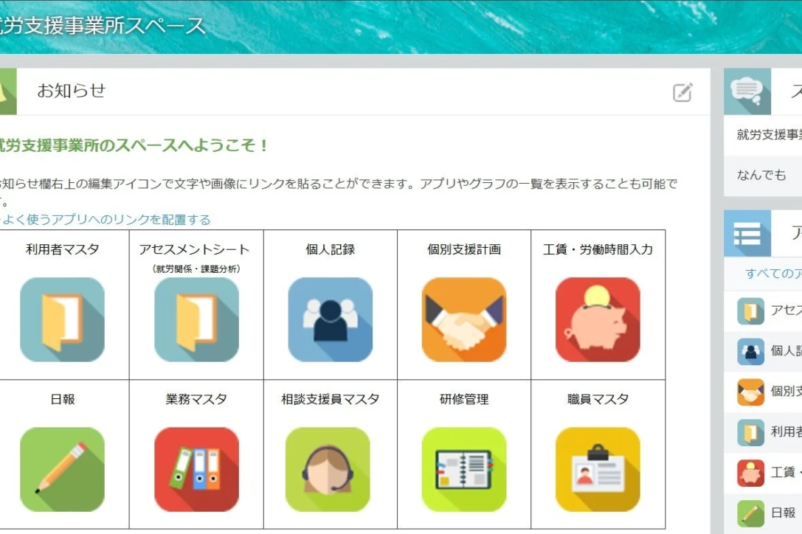 就労支援事業所では、利用者や職員の名簿管理、利用者一人ひとりの支援状況、個別支援計画、工賃や労働時間の管理、相談支援員との記録など、多岐にわたる事務作業が発生します。これらの情報は、紙やExcelで管理されていることが多く、情報の散逸や連携不足が課題となっていました。