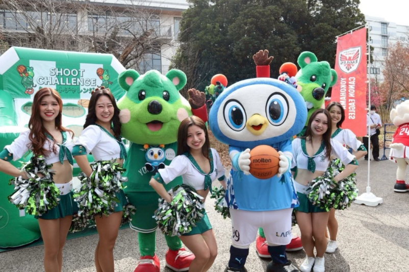 2月22日には、ニッパツ三ツ沢球技場で開催された横浜FCホームゲーム「エンジョイ ヨコハマ Fuli Furi Fes」に参加しました。シュート体験ブースが設置され、特命広報隊員兼営業部のPickとRollも参加しました。また、専属チアリーダーズELEGANCEによるパフォーマンスや、横浜FCの「F!リーダーズ」とのスペシャルコラボパフォーマンスも披露され、会場を大いに盛り上げました。