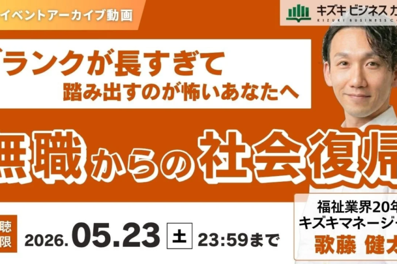 「無職期間が長すぎて、社会へ踏み出すのが怖い」と感じている方は少なくありません。同年代の活躍をSNSで見ては落ち込み、「働かなきゃ」と思うほど体が重くなってしまう。そんな悩みを抱える方のために、就労移行支援事業所キズキビジネスカレッジ(KBC)が、オンラインセミナーのアーカイブ動画を無料で期間限定配信しています。