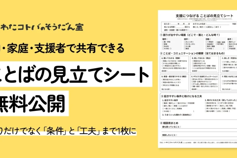 「支援につなげる ことばの見立てシート」は、2026年1月24日より無料で公開されています。ダウンロードは、「いわたコトバのそうだん室」のInstagramおよびnoteから可能です。