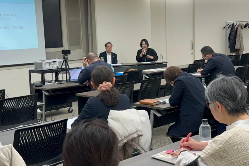 発表会では、行政書士・社会保険労務士で「親なきあと」相談室主宰の渡部伸氏と、一般社団法人親なきあと相談室関西ネットワーク代表理事の藤井奈緒氏が登壇し、質疑応答を行いました。