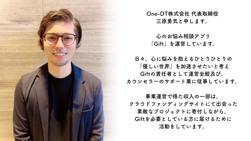 ・事業内容:うつ・適応障害・発達障害やHSPでお悩みの方向けチャット&電話相談アプリ「Gift」の企画開発及び運営