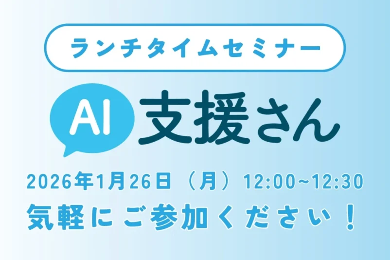 このような声に応えるため、株式会社パパゲーノは、2026年1月26日(月)12:00より、無料オンラインセミナー「ランチタイムで学ぶ!AI支援さん最新情報&福祉現場のAI活用事例」を開催します。お昼休みの30分間で、AI活用に関する最新情報や具体的な事例を学ぶことができる機会です。