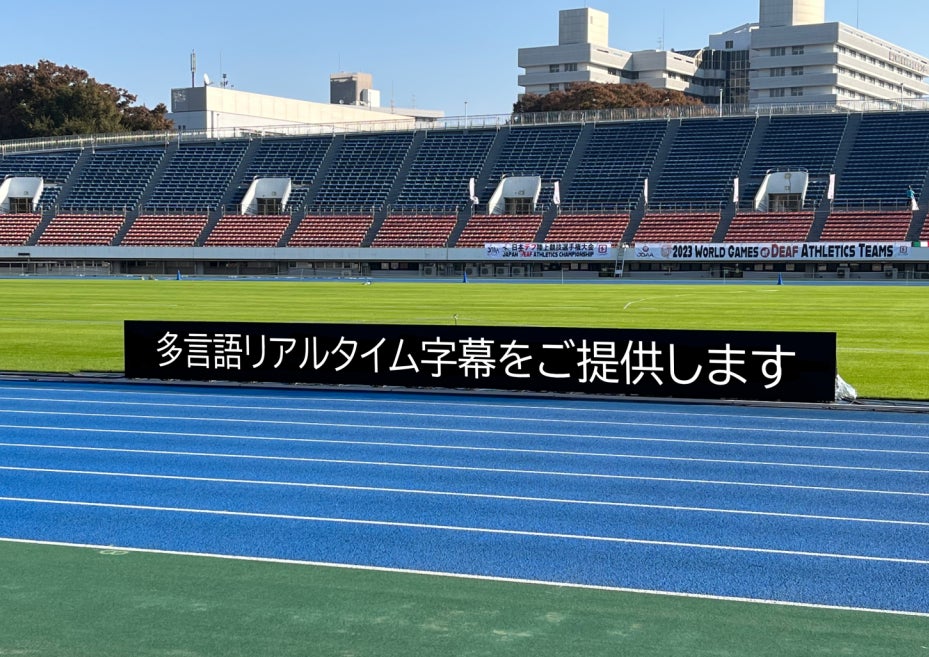 本大会では、株式会社日テレ アックスオンによる場内実況配信とPekoeを組み合わせることで、陸上競技中の実況内容をトラックに設置したリボンビジョンにリアルタイム表示。この取り組みにより、聴覚に障がいのある選手や観客も、競技の臨場感や実況内容をリアルタイムで把握できるようになっています。