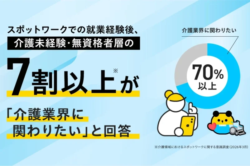 今回の調査により、スポットワークが介護業界における人材確保の有効な手段であることが示されました。介護未経験・無資格者層の業界への新規流入を促し、潜在有資格者の復職を支援することで、深刻な介護人材不足の解消に貢献する可能性を秘めています。今後もスポットワークの活用が進むことで、介護業界全体が活性化し、より多くの人々が安心して介護サービスを受けられる社会へと繋がることが期待されます。