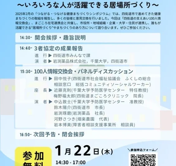 四街道市の健康まちづくり、多様な人々が活躍できる地域づくりに関心がある方は、ぜひこの機会にご参加ください。