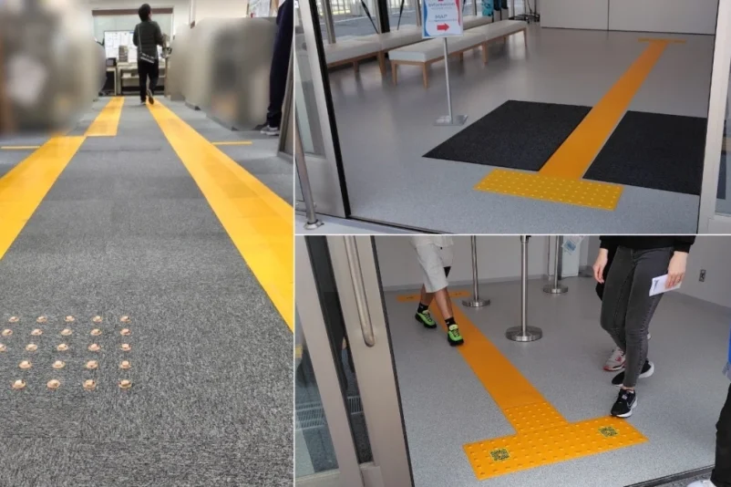 学校関係者からは、「職員室内や廊下に歩導くんガイドウェイ等が設置されたことで、通路が狭く机が張り出した環境でも、安全に移動できるようになった」「通行の流れが明確になり、幼稚部から高等部までの児童・生徒に加え、弱視・全盲の教職員にとっても、日常の移動がよりスムーズになった」といった声が寄せられています。