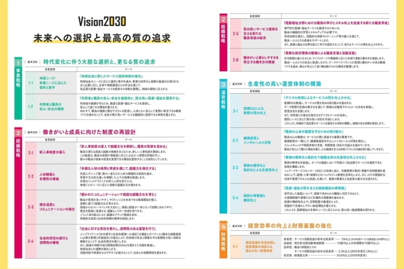 これらの背景を踏まえ、聖隷福祉事業団は、守るべきものと変革すべきものを明確にし、持続的な成長に向けた方向性を示しています。