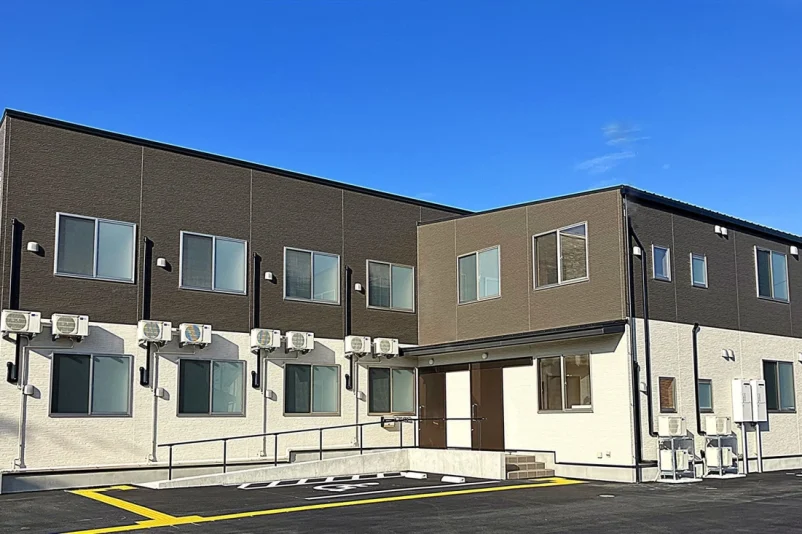 建物はグループホーム開設のために新築されており、バリアフリー設計が採用されています。バリアフリートイレ、入浴リフト、玄関スロープ、エレベーターなどが設置されているため、車いすを利用する方も安心して生活できます。また、防犯カメラやスプリンクラーなどの防犯・防災設備も完備されており、安全な住環境が提供されています。