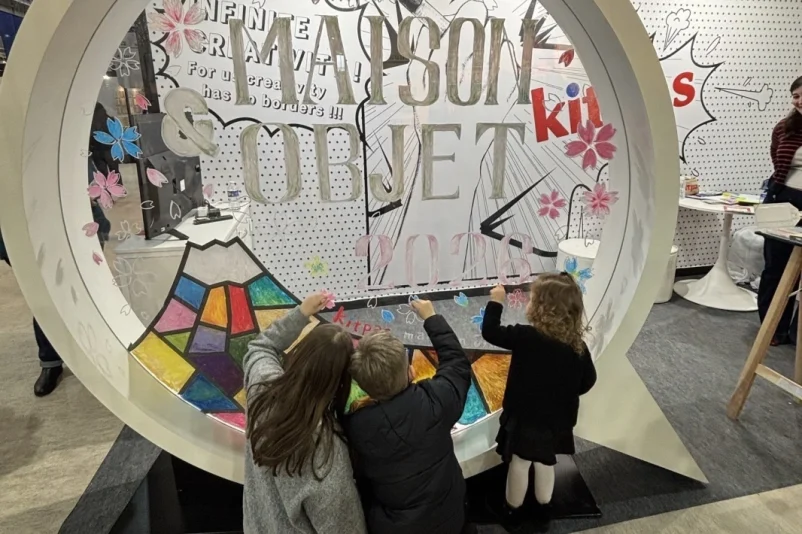 「メゾン・エ・オブジェ」の会場では、「キットパス」の最大の特徴である「ウィンドウアート」のライブペインティングが連日行われ、多くのバイヤーやデザイナー、そして子どもたちの足を止めました。透明なアクリルパネルが鮮やかな色彩で彩られていく様子は、来場者の関心を集め、「おうちの窓に描けることが魅力」「消せるからこそ、失敗を恐れずに描けるのが素晴らしい」といった声が聞かれました。