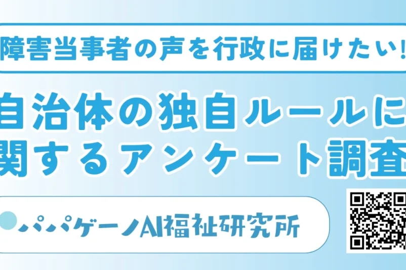 株式会社パパゲーノは、こうした自治体独自のルールに対する「障害当事者の声」を集め、杉並区や東京都、厚生労働省などへの政策提言に活用するためのアンケート調査を開始しました。