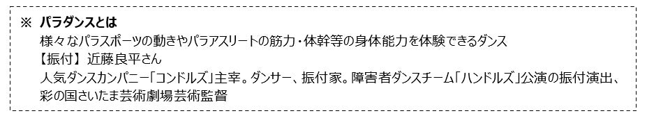 当日のステージコンテンツ「みんなでパラダンス」の振付動画を順次公開します。