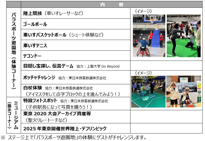 「パラスポーツ遊園地(体験コーナー)」では、パラスポーツ体験のほかにも、白杖体験や小さなお子さんでも楽しめる目隠し宝探し、パラスポーツの動きを基にしたトレーニングにチャレンジできるコーナーを設置。ゲストやパラアスリートと一緒に体験できるかも!「ミュージアム(展示コーナー)」には会場限定フォトスポットも登場!