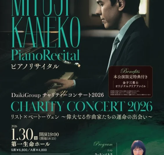 | 公演名 | Daiki Group presents Charity Concert 2026 金子三勇士ピアノリサイタル『リスト×ベートーヴェン〜偉大なる作曲家たちの運命の出会い〜』 |