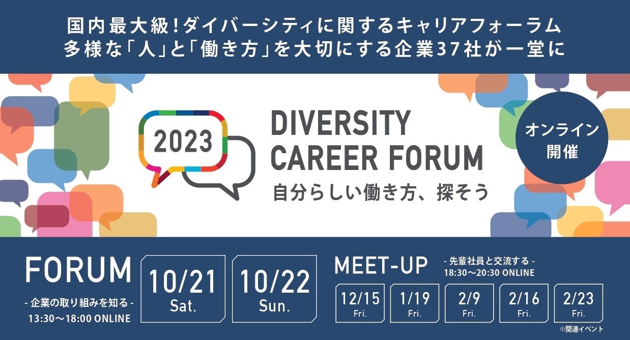 認定NPO法人ReBitは、国内最大級のダイバーシティと就労に関するキャリアフォーラム「DIVERSITY CAREER FORUM 2023」を、2023年10月21日(土)〜2024年2月23日(金)の4ヶ月、オンラインで開催します。当フォーラムでは、学生・若者らを主対象に、企業のダイバーシティ(LGBTQ、ジェンダー、障がい、多文化など)の取り組みを、トークショーや交流イベントを通じて紹介します。