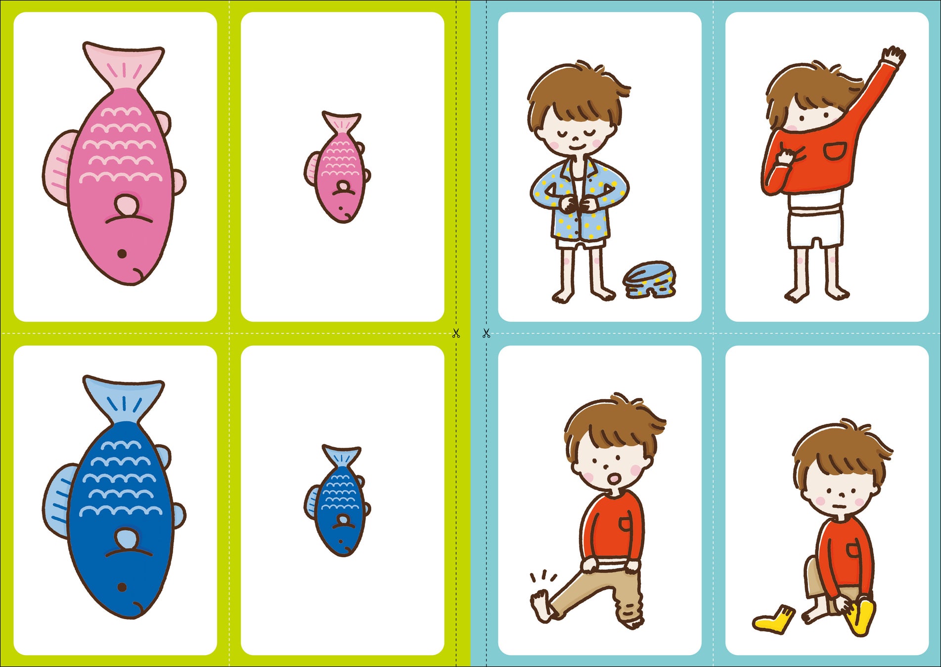 かわいい絵を見ながらお話したり、順番に並べて遊びます。