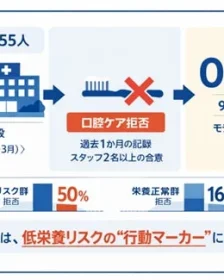 知的障害のある成人における口腔ケア拒否が、栄養状態のリスクと関連している可能性が九州歯科大学の研究で示されました。この発見は、日々のケアにおける「拒否」が単なる困りごとではなく、健康状態を早期に把握するための重要な手がかりとなることを示唆しています。支援現場での多職種連携を促し、より良いケアへと繋がる可能性についてご紹介します。